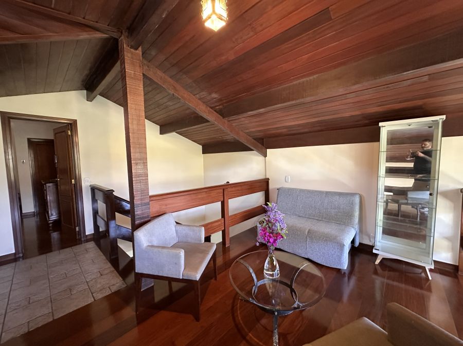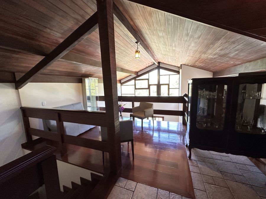 Mezanino com visão para a sala, podendo ser usado como escritório ou espaço de leitura.