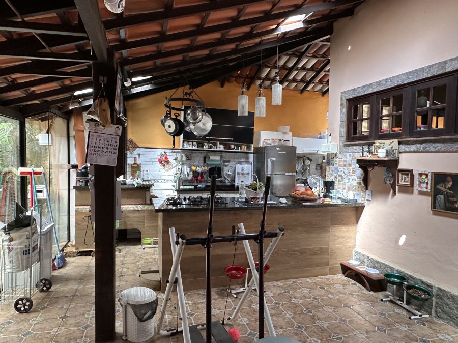 Cozinha externa coberta, ideal para recepções.
