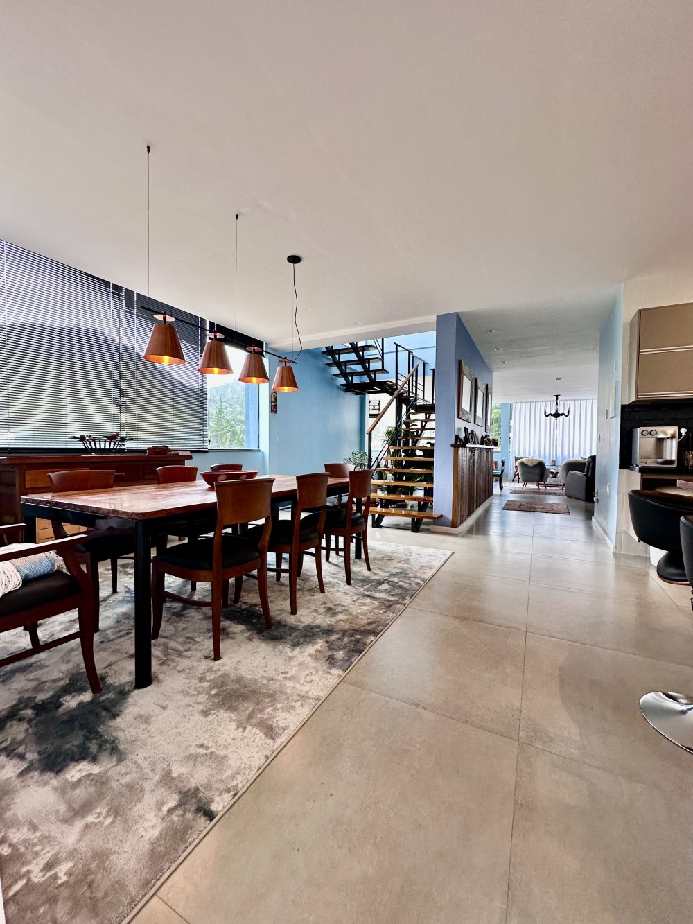Sala: Sala ampla com dois ambientes e pé-direito duplo